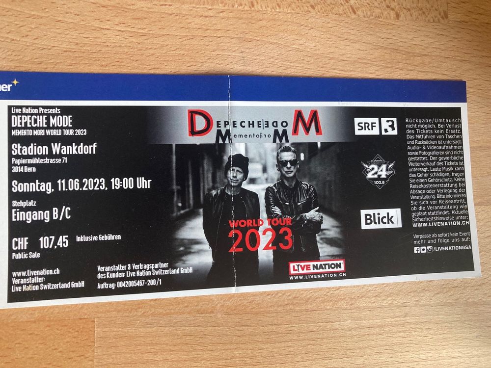 Depeche Mode Bern 11 06 Stehplatz B C Originalpreis Kaufen Auf Ricardo