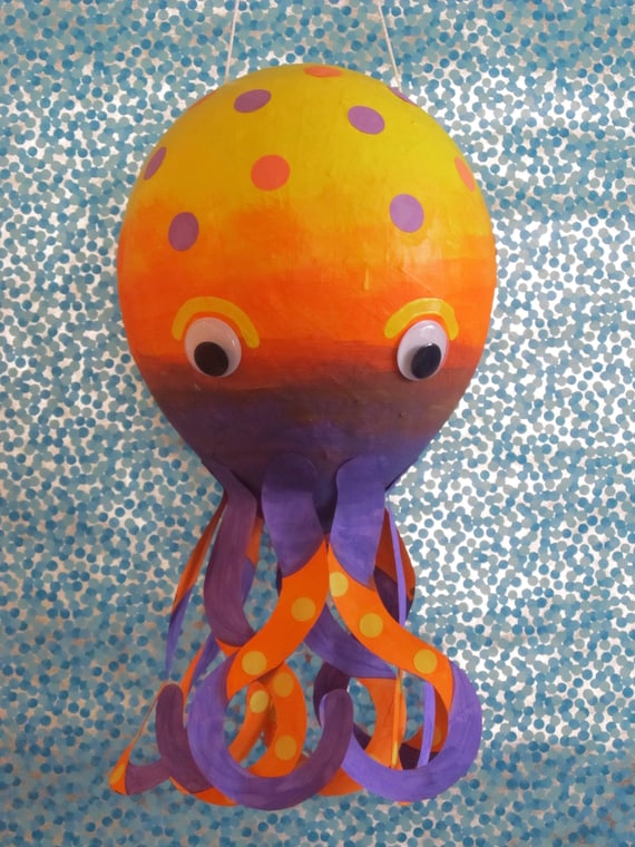 Octopus Pinata Nature Pinata Ocean Party Theme Birthday Octopus Decor Yellow Orange Purple Octopus Sea Creature Pinata Original Design Etsy Uk